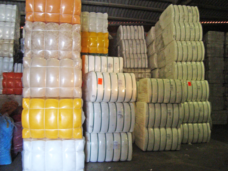 También disponemos ocasionalmente de mezclas de algodón, poliéster o algodón-fibras diversas, poliéster, acrílicos y poliamidas así como retales de algodón hidrófilo.