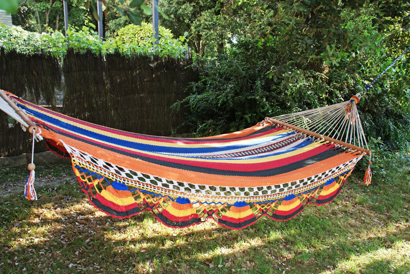 Nuestra gama de hamacas y tejidos artesanales y técnicos se compone de hamacas tejidas a mano, tanto hamaca salvadoreña que es de tejido plano y es una hamaca muy campesina como la típica hamaca nicaragüense que es una hamaca de nudo tipo macramé mas señorial, todas nuestras hamacas como pueden ver por las fotos y por su procedencia son de diversos y vivos colores, también tenemos hamacas con bolillos de madera y bolsas porta hamacas.